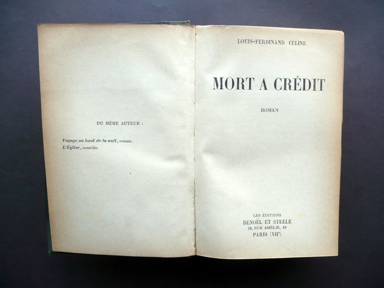 Louis Ferdinand Celine Mort a Credit Deonel et Steele Paris 1936 Prima Edizione | Libri antichi e moderni |