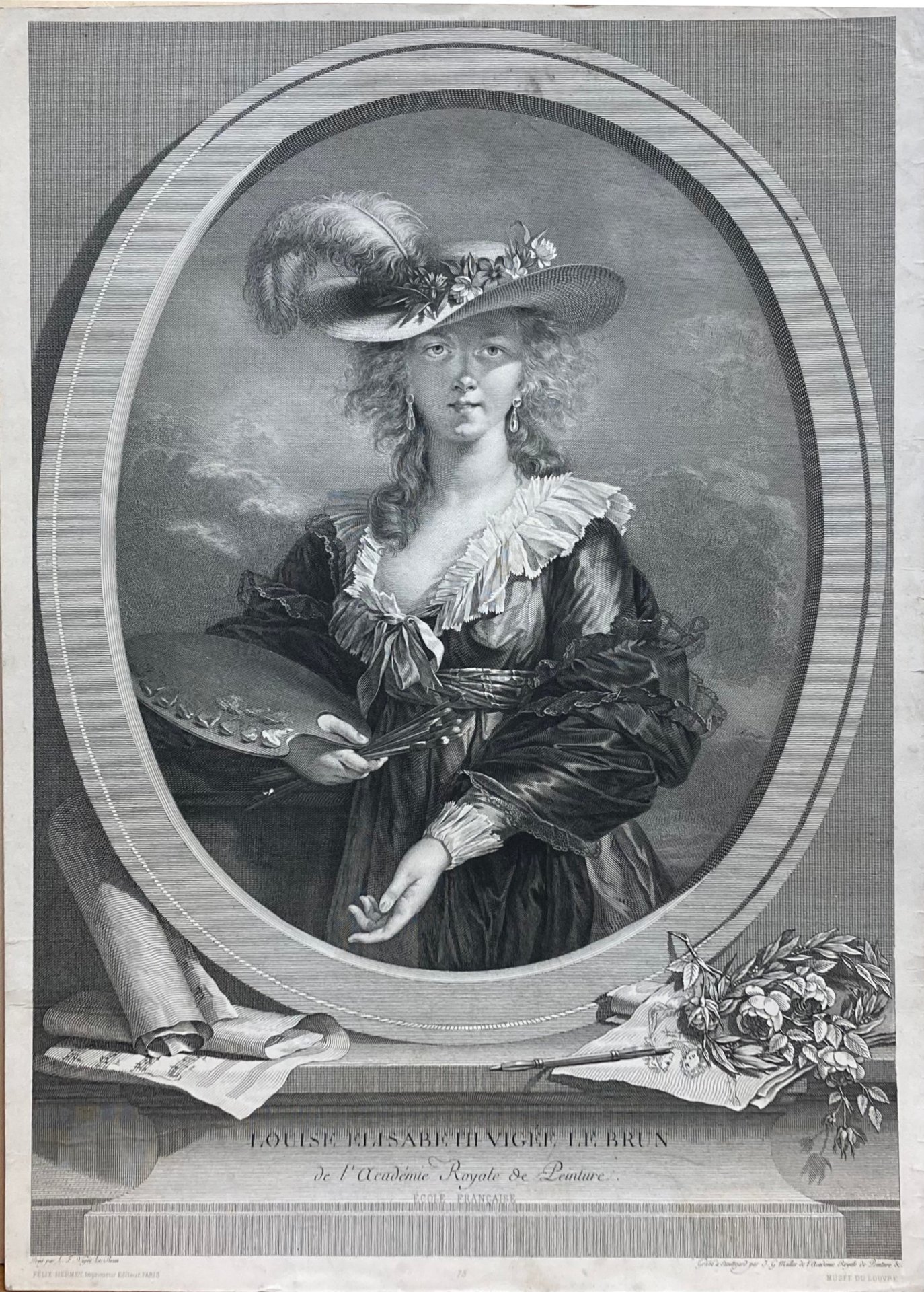 Incisione realizzata dal celebre autoritratto di Madame Le Brun (1755- 1842), ovvero una pittrice ritrattista francese. acquaforte cm. 28,5 x 41,4 Buono (Good) Buon es..