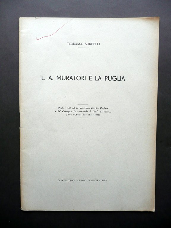 Ludovico Antonio Muratori e la Puglia Tommaso Sorbelli Cressati Bari 1952 | Libri antichi e moderni |