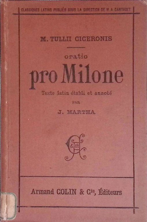 M. Tulli Ciceronis Oratio pro Milone | Libri antichi e moderni | Martha Jules, a cura di
