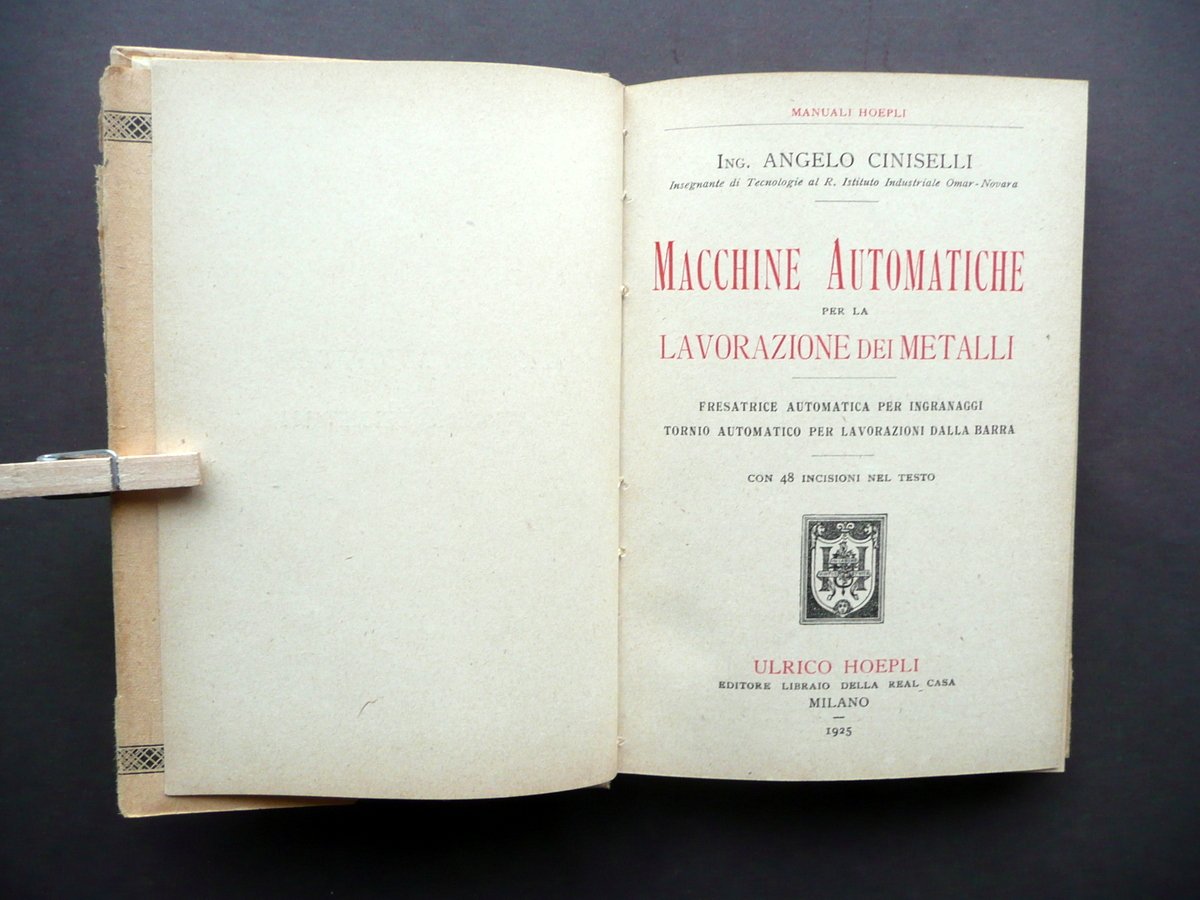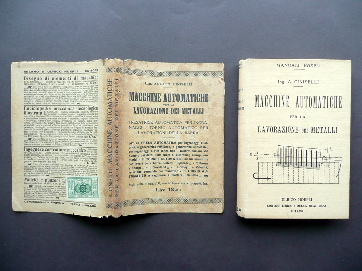 Macchine Automatiche per la Lavorazione dei Metalli Ciniselli Hoepli Milano 1925 | Libri antichi e moderni |