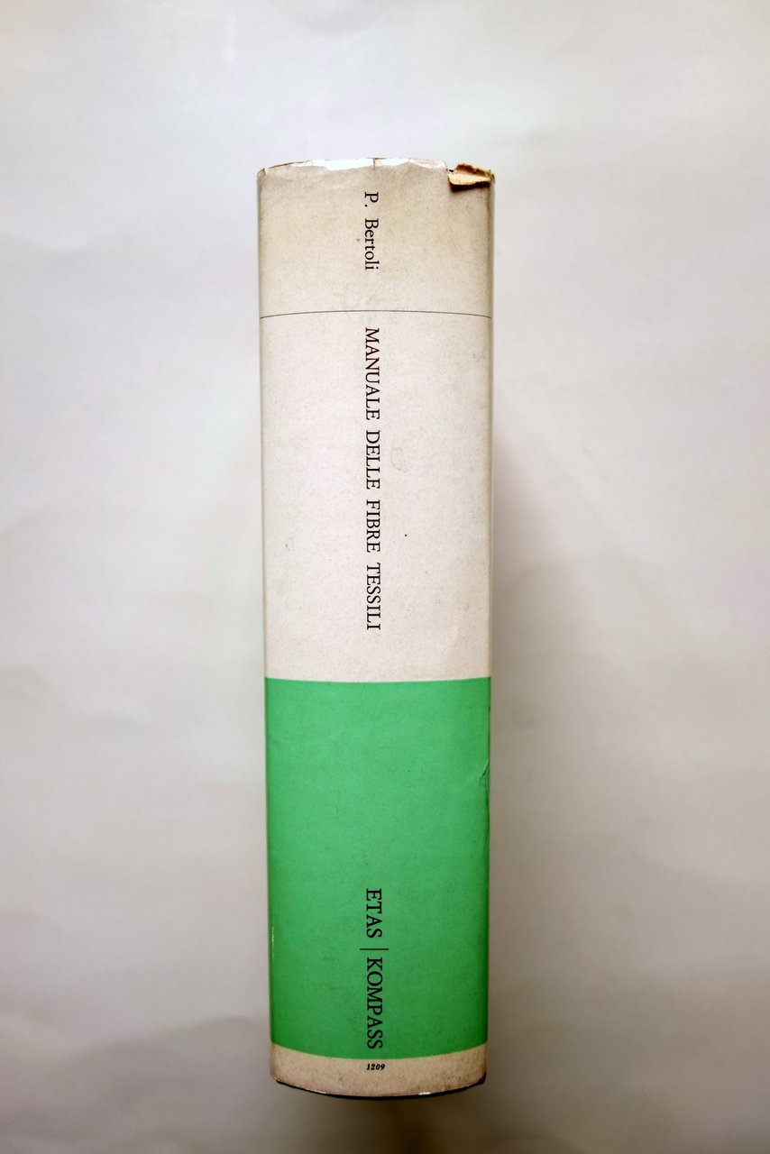 Pio Bertoli, Manuale delle fibre tessili Etas-Kompass, Milano 1967; cm 21,5x15; pp. XII-814; piena similpelle ed. con sovraccoperta ed. ill. a colori. Condizioni di conservazione Buone condizioni con tracce d'uso; sovraccoperta minimamente sgualcita ai margini e con pochi piccoli taglietti, minimi accenni di sporco. Interni pressoché ottimi. SETT168.L22348 N