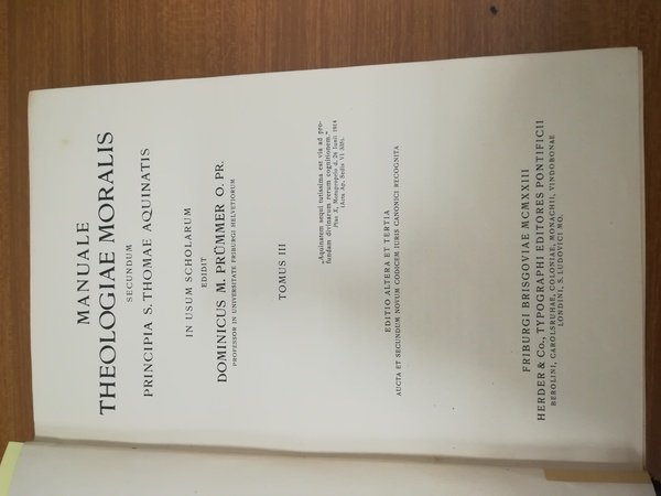 Manuale theologiae moralis secundum principia S. Thomae Aquinatis 3 volumi. | Libri antichi e moderni | Dominicus M. Prummer