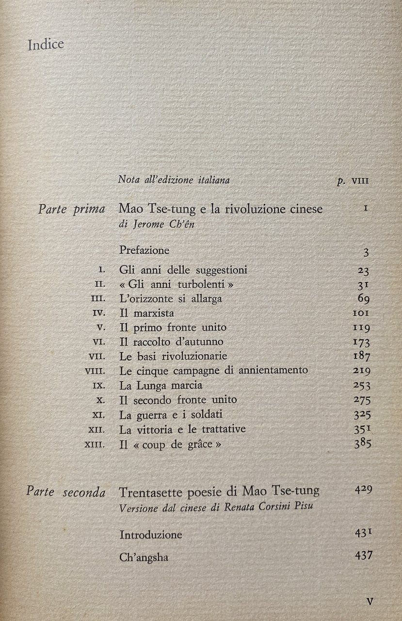 MAO TSE-TUNG E LA RIVOLUZIONE CINESE. CON TRENTASETTE POESIE DI MAO | Libri antichi e moderni | Jerome Ch'En, Enrica Collotti Pischel, Giorgio Rovida, Renata Corsini Pisu