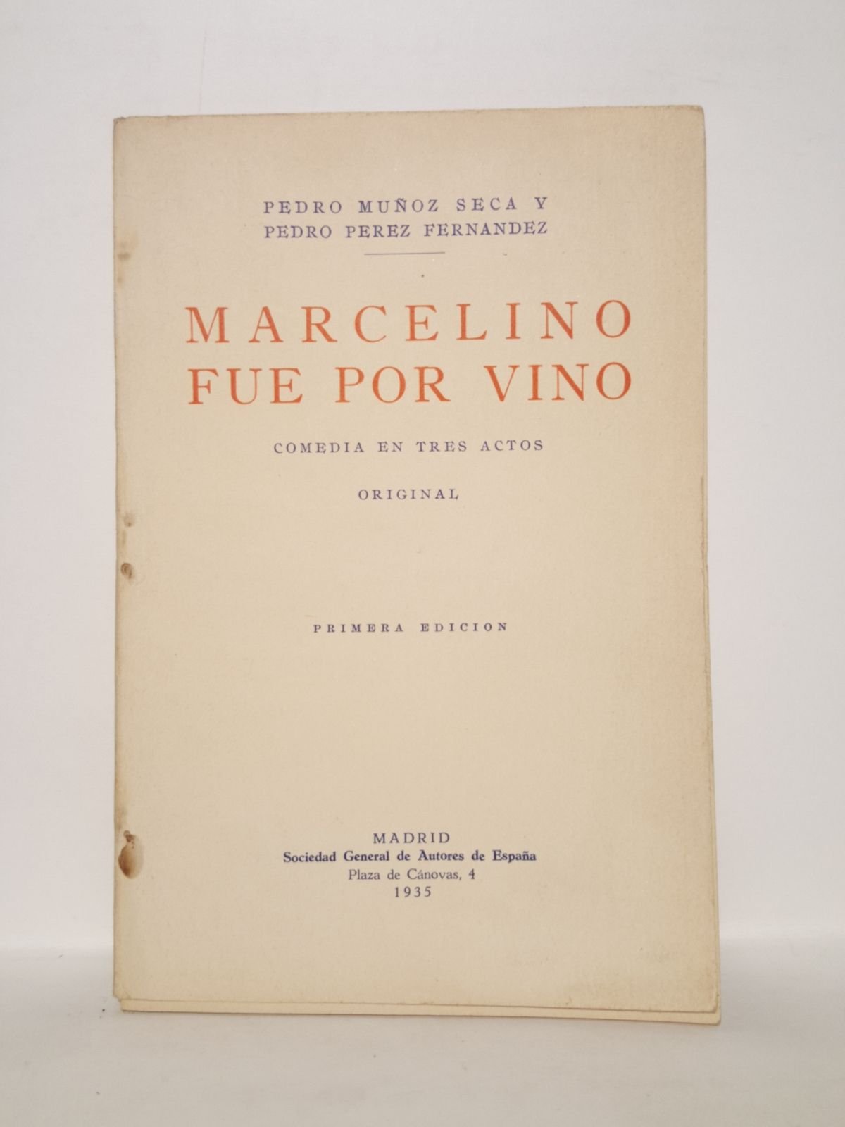 Marcelino fue por vino. (Comedia en tres actos, original. Estrenada en el Teatro de los Campos Elíseos de Bilbao, el día 30 de Agosto de 1935) | Libri antichi e moderni | Muñoz Seca, Pedro Y Pedro Pérez Fernández