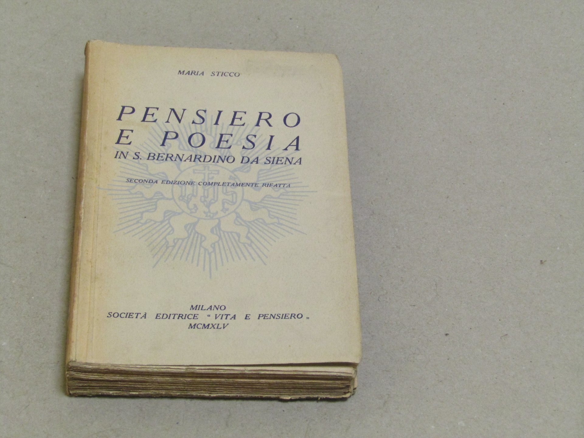 Maria Sticco Maria Sticco. Pensiero e poesia in S. Bernardino da Siena. Milano, Società Editrice "Vita e Pensiero" 1945 italiano, 19 13 365 Pagine intonse.