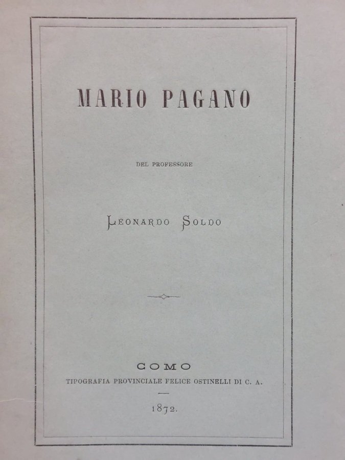 Mario Pagano. Discorso letto nel regio liceo di Aquila degli Abruzzi l'anno 1867. | Libri antichi e moderni | Soldo Leonardo.