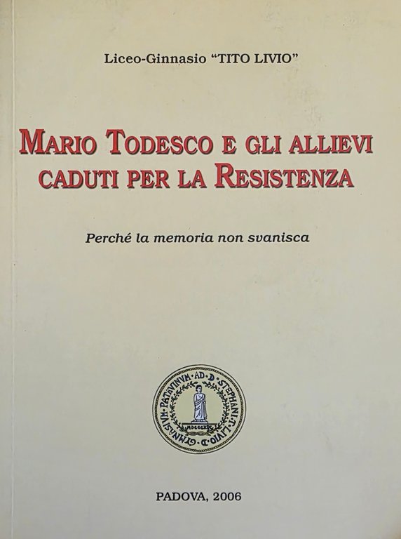MARIO TODESCO E GLI ALLIEVI CADUTI PER LA RESISTENZA. PERCHÉ LA MEMORIA NON SVANISCA | Libri antichi e moderni | S. A., ,S. A.