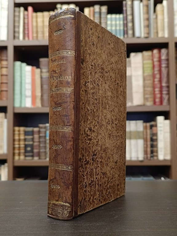 <span style="font-family: Arial, Verdana; font-size: 10pt; font-variant-caps: normal; font-weight: normal; font-style: normal;">In-8° (cm. 21,8), legatura coeva in mezza pelle con titolo e fregi in oro al dorso liscio (alcune tracce d'uso), piatti marmorizzati, tagli blu; pp. 484 in buono stato; alcune fioriture,</span><i style="font-family: Arial, Verdana; font-size: 10pt; font-variant-caps: normal; font-weight: normal;"> Ex Libris</i><font face="Arial, Verdana" size="2"> figurato applicato al contropiatto. Interessante volume di pensieri a cui segue, con occhietto proprio, una <i>Antologia Napoleonica ossiano Prose e Rime dettate in onore di Napoleone dai migliori ingegni dell'età nostra, </i>raccolta di scritti di Ugo Foscolo, Vincenzo Monti, Alessandro Manzoni, Melchiorre Cesarotti, Barthelemy e altri. Buon esemplare. (NJ3)</font>