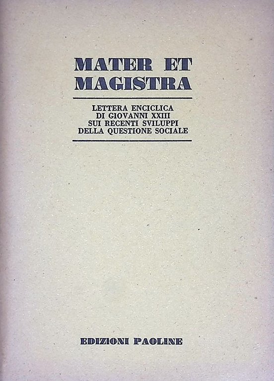 Mater et magistra. Lettera enciclica di Giovanni XXIII sui recenti sviluppi della questione sociale | Libri antichi e moderni |