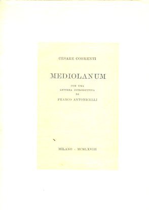 Mediolanum. Con una lettera introduttiva di Franco Antonicelli | Libri antichi e moderni | Correnti Cesare