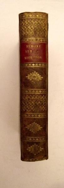Pp. xii, 211 (5). Unito a: Second mémoire sur la nutrition. Supplement… Montpellier, 1789. Pp. viii, 155 (1) 118 + (2) d'errata. Solida ed elegante legatura coeva in piena pelle, dorso liscio con titoli e ricchi fregi in oro. Tagli rossi. Esemplare fresco e genuino, in ottimo stato di conservazione. Ex libris nobiliare: Joseph Dumont. Lunga dissertazione composta in risposta ad una questione dell'Accademia imperiale di scienza di San Pietroburgo. Cfr. Oberlé 451.