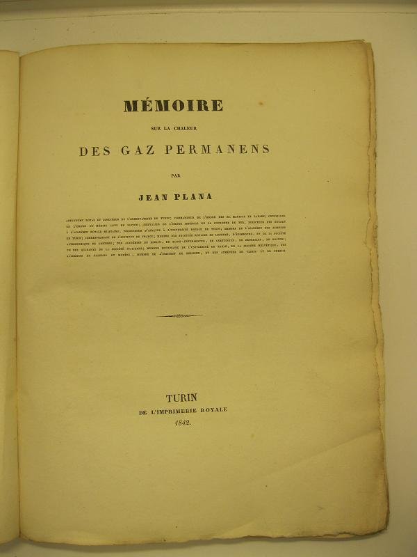 Memoire sur le chaleur des gaz permanens par J. Plana | Libri antichi e moderni | Plana Giovanni