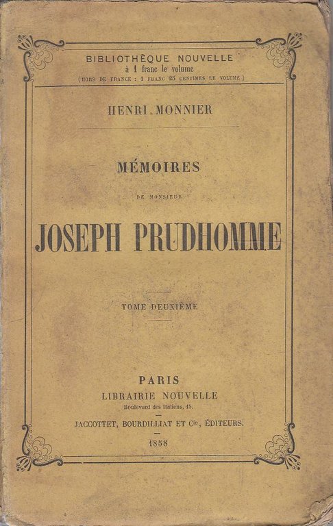 Mémoires de Monsieur Joseph Prudhomme. Tome deuxième | Libri antichi e moderni | Henri Monnier