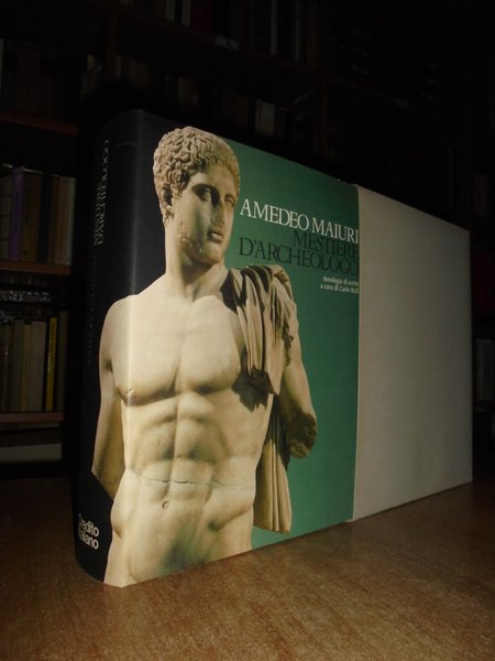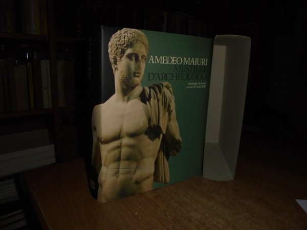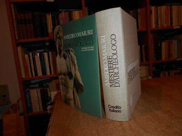 AMEDEO MAIURI. a cura di Carlo Belli. Milano, Libri Scheiwiller per Credito Italiano, 1978. Mestiere d' Archeologo. In-4° grande, tela edit. con titoli sul piano e al dorso, sovracopertina ill. a col. 659, (7) pp. con innumerevoli illustrazioni a colori anche a piena pagina e in tavole ripiegate. In stato di nuovo conservato nell' astuccio edit. in cartoncino muto. Uff. stanza TV. mob. fronte nostro in alto.