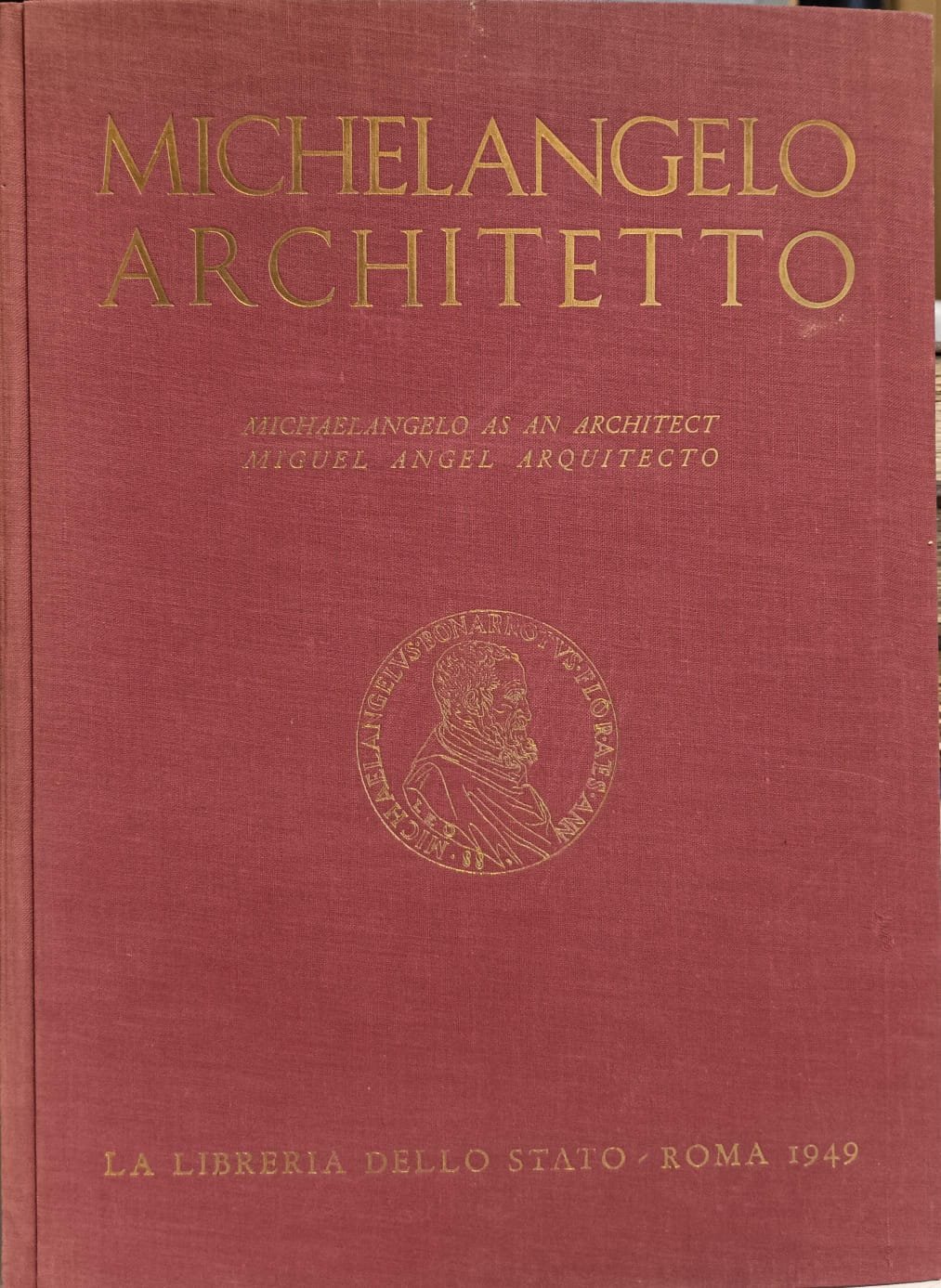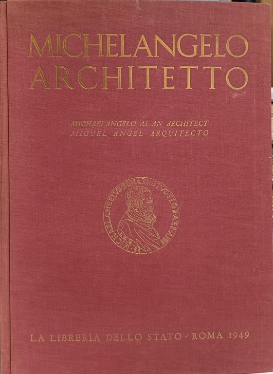 In-4 gr., tela editoriale, pp. 42,(2), con 168 illustrazioni in bianco e nero in tavole fuori testo, alcune più volte ripiegate, che raffigurano le opere di architettura di Michelangelo suddivise in: architettura sepolcrale - civile - religiosa e militare. Tutte sono precedute da una breve nota descrittiva in italiano, inglese e spagnolo. Ben conservato.