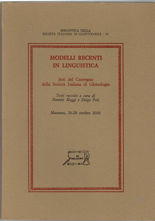 Modelli recenti in linguistica. Atti del Convegno della Società italiana di glottologia, Macerata, 26-28 ottobre 2000 | Libri antichi e moderni | Maggi, Daniele - Poli, Diego (a cura di)