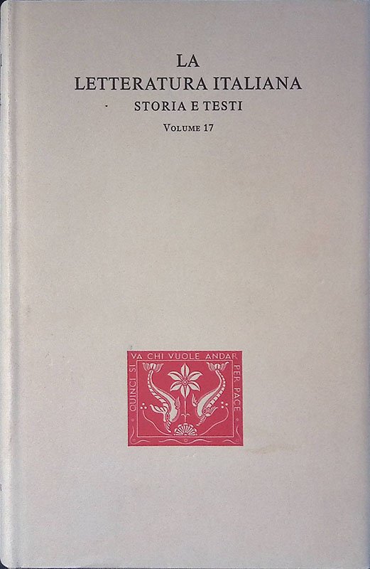 La Letteratura Italiana Storia e Testi, Volume 17. A cura di Franca Ageno. XXX + 1179 p., f.to cm 23x15, copertina rigida con sovraccoperta, custodia in cartoncino flessibile. Ottime condizioni.