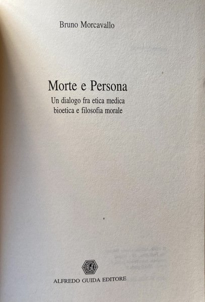 MORTE E PERSONA. UN DIALOGO FRA ETICA MEDICA BIOETICA E FILOSOFIA MORALE | Libri antichi e moderni | Bruno Morcavallo