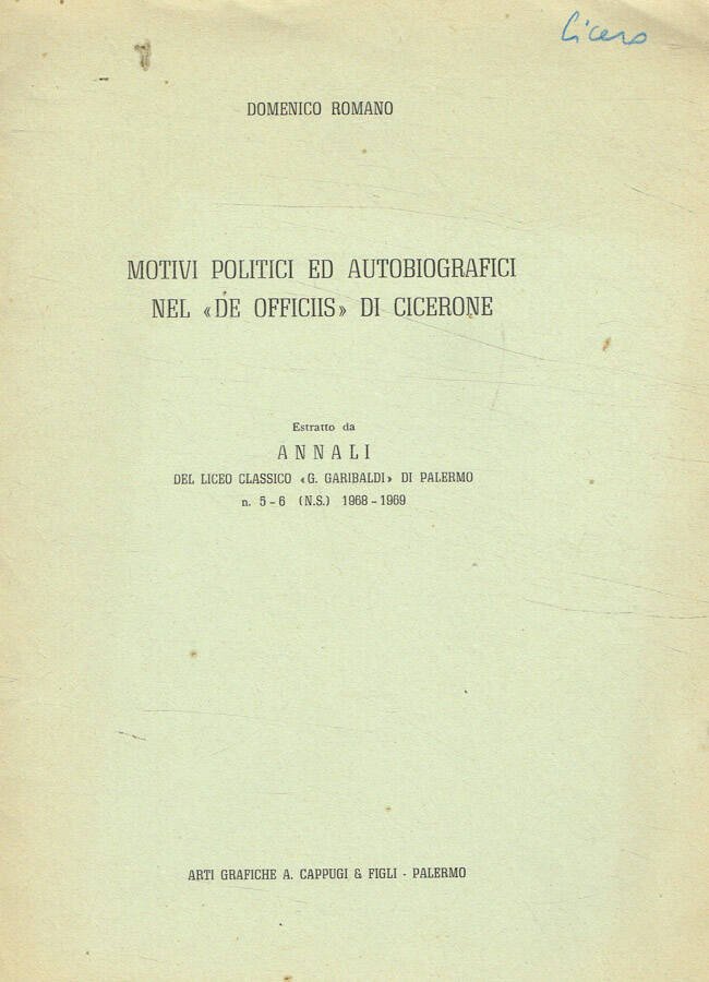 Motivi politici ed autobiografici nel De Officiis di Cicerone | Libri antichi e moderni | Domenico Romano