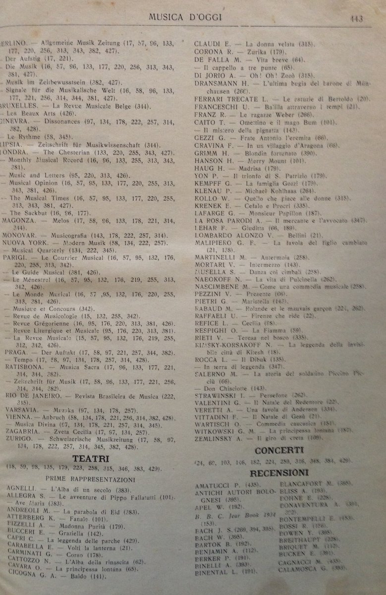 Musica d'Oggi Rassegna di Vita e di Coltura Musicale 12 Numeri Annata 1934