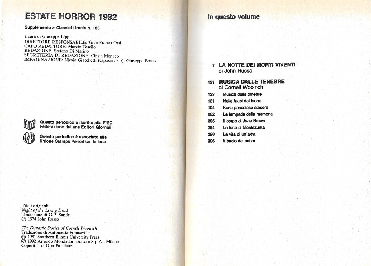 MUSICA DALLE TENEBRE - LA NOTTE DEI MORTI VIVENTI | Libri antichi e moderni | CORNELL WOOLRICH - JOHN RUSSO, ,CORNELL WOOLRICH - JOHN RUSSO