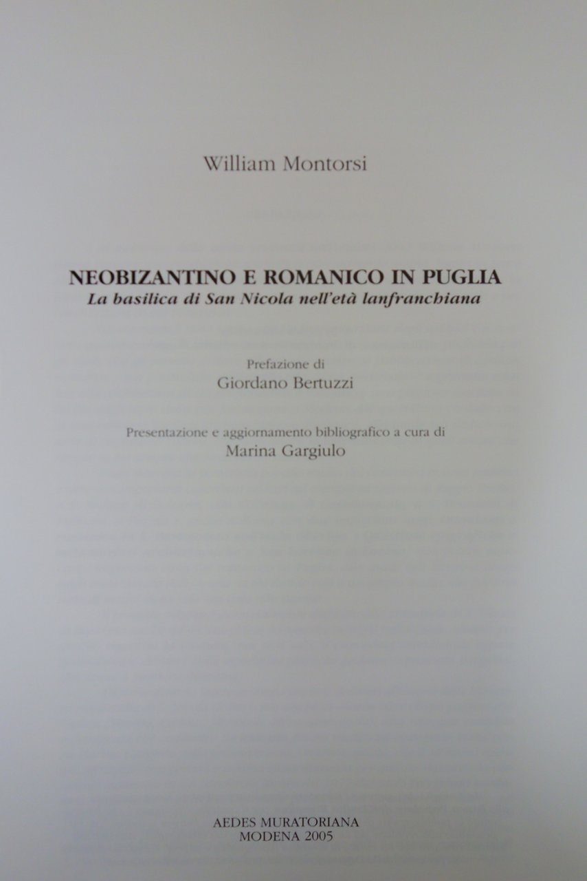 NEOBIZANTINO E ROMANICO IN PUGLIA BASILICA SAN NICOLA MONTORSI AEDES 2005 RARO | Libri antichi e moderni |