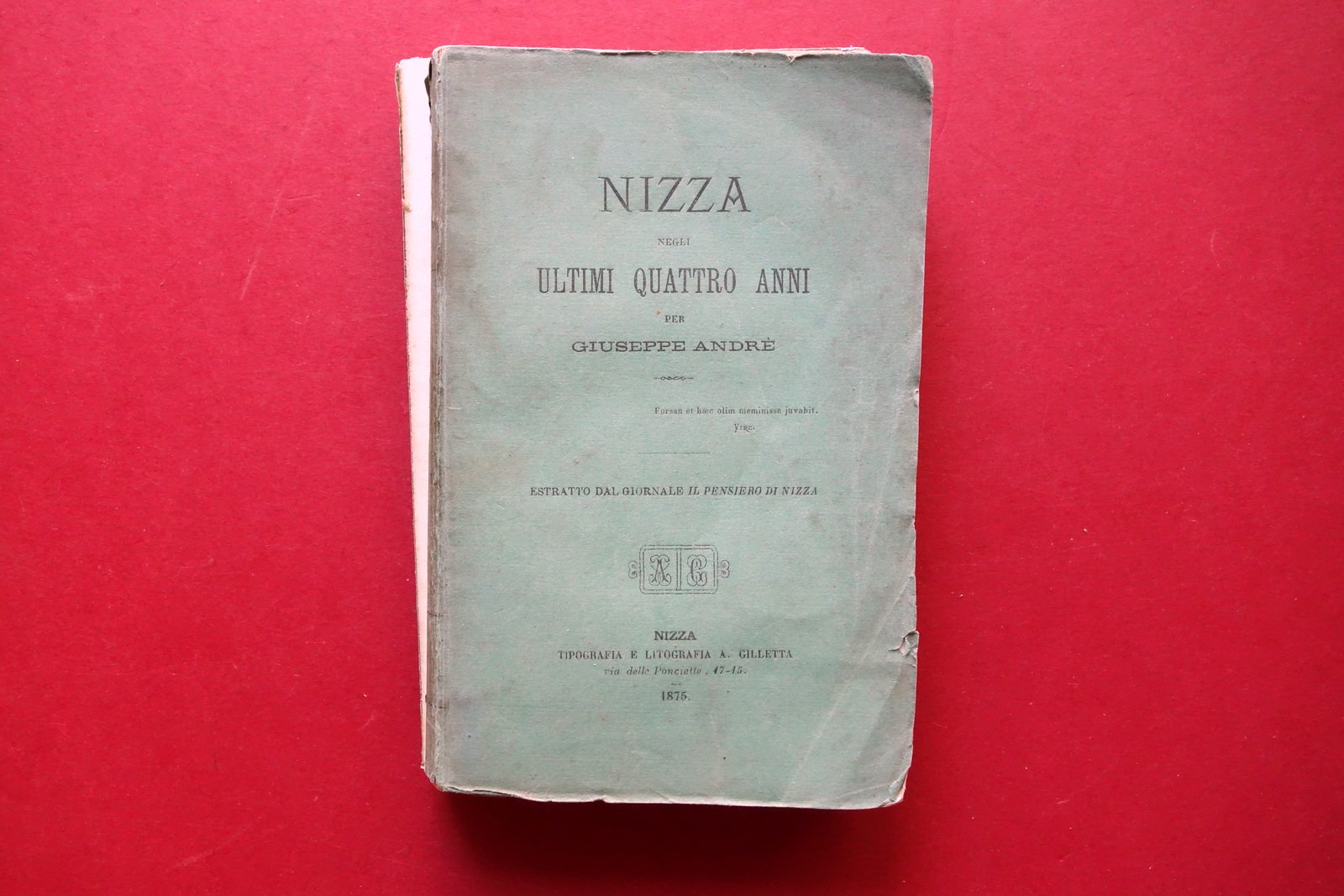 Nizza negli ultimi quattro anni Giuseppe AndrË Tip. Gilletta 1875 Ed. Originale