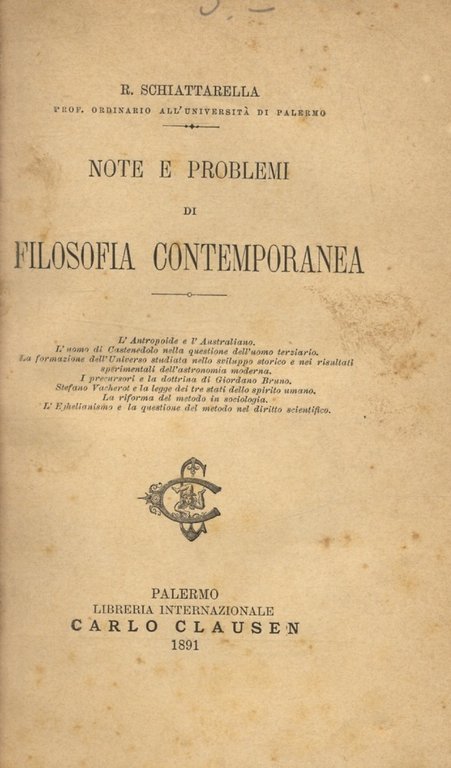 Note e problemi di filosofia contemporanea. | Libri antichi e moderni | Schiattarella R.