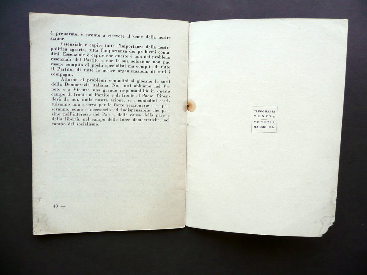 Note su Alcuni Aspetti Politica Agraria dei Comunisti Vicentini Gaddi PCI 1954 | Libri antichi e moderni |
