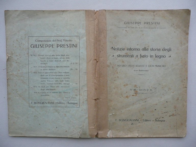 Notizie Intorno alla Storia Strumenti a Fiato Legno Prestini Bologna 1925 Musica | Libri antichi e moderni |