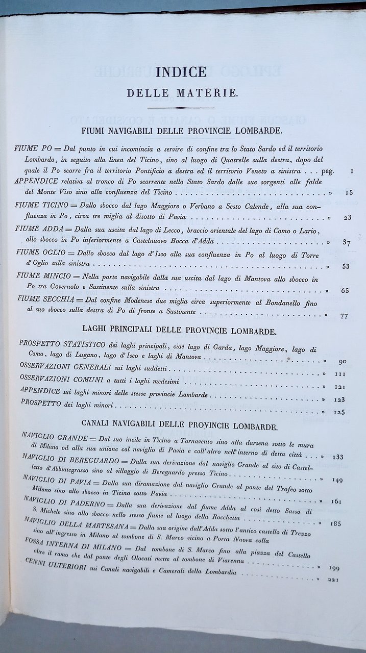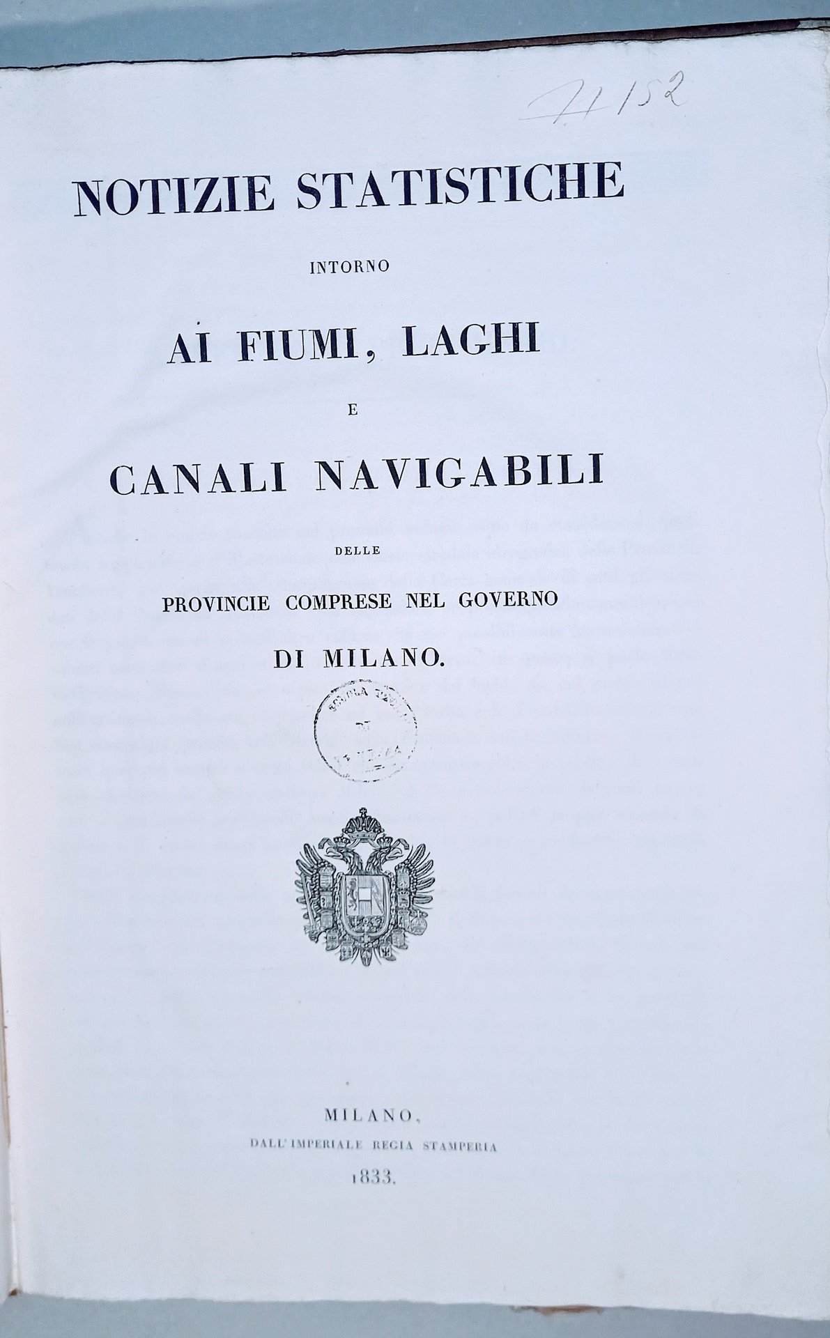NOTIZIE STATISTICHE INTORNO AI FIUMI, LAGHI E CANALI NAVIGABILI DELLE PROVINCIE COMPRESE NEL GOVERNO DI MILANO - 1833