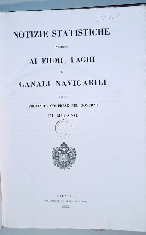 NOTIZIE STATISTICHE INTORNO AI FIUMI, LAGHI E CANALI NAVIGABILI DELLE PROVINCIE COMPRESE NEL GOVERNO DI MILANO - 1833 | Libri antichi e moderni | Anonimo (Masetti)