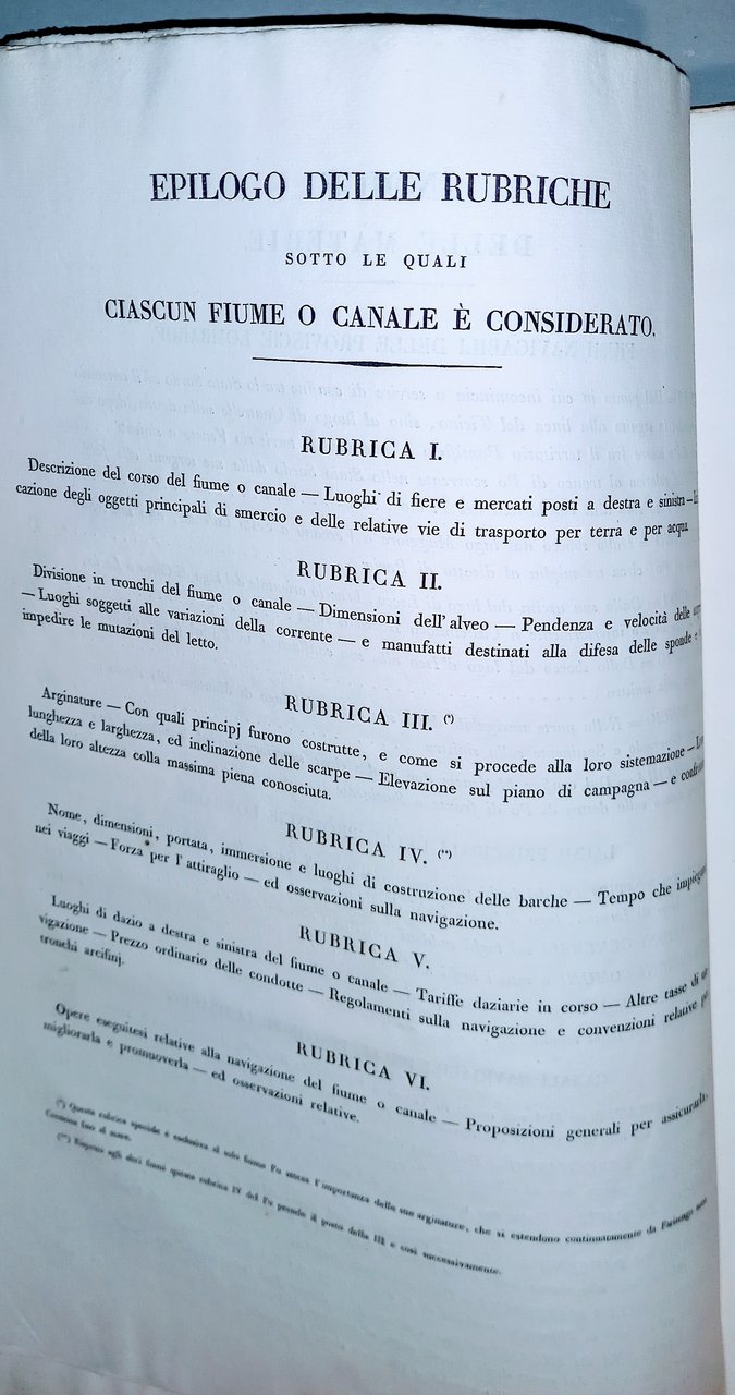 In-folio (cm. 45), pp. 231, cartonatura coeva alla bodoniana. Tavole suppletorie e di illustrazione della CARTA STRADALE IDROGRAFICA DELLE PROVINCIE LOMBARDE per servire alla compilazione della CARTA GENERALE DI TUTTI GLI STRADALI DELLA MONARCHIA AUSTRIACA. Corsi dei fiumi Po, Ticino, Adda, Oglio, Mincio, Secchia; Informazioni sui laghi di Garda, Maggiore, di Como, di Lugano, di Iseo, di Mantova e minori come Spinone, Gajano, di arno, Idro, Strone, Ganna, Ghirla, Arcisate, Varese o Bodio, Biandronno, Monate, Comabbio, del Piano, di Montorfano. di sagrino, di Pusiano, di Alserio, di Annone, di Pescarenico, di Olginate, di Brivio, Delio, Brenno, di Sartirana, di Derotta e di tutti i canali navigabili lombardi (Naviglio grande, di Bereguardo, di Pavia, di Paderno, della Martesana e fosaa interna di Milano. Con tantissime informazioni sulla storia, navigabilità, opere idrauliche, trasporti, fino ai prezzi per DIRITTO DI CATENA per ogni tipologia di merci. Molto raro e interessantissimo per le informazioni riportate. In barbe, timbro di estinta biblioteca, spellature ai bordi della legatura, piatto anteriore leggermente ossidato (16109/ INGEGNERIA STRADALE - FIUMI - LAGHI - CANALI - LOMBARDIA)
