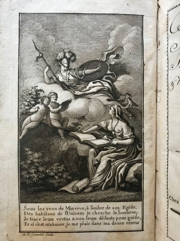 In-8° (cm. 16,6), legatura coeva in mezza pelle (lievi usure); pp. [4] IV 77 [3b] in buono stato, con 1 tavola illustrativa in rame in antiporta n.t. e 24 grandi figure in rame n.t.; frontespizio sempre calcografico, fregi in silografia; leggere bruniture e sporadiche fioriture, antica firma di appartenenza al frontespizio. Raro libro di racconti con gustose immagini incise da Ambram-Louis Girardet. Cfr. Foà, Catalogo, p. 136. Buon esemplare.