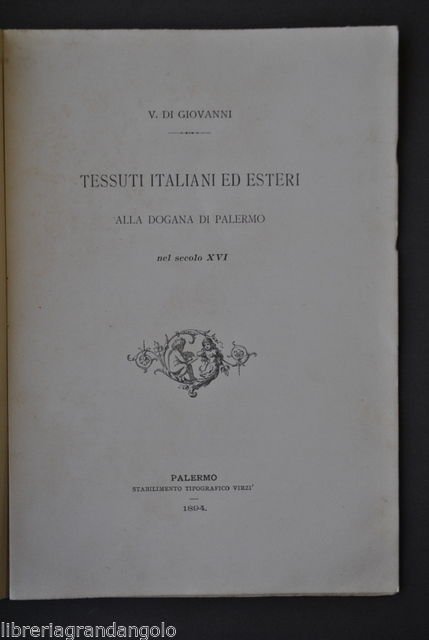 Vedere la descrizione dettagliata Nozze Marcello - Grimani Giustiniani Tessuti Italiani ed Esteri alla Dogana di Palermo nel secolo XVI" Stabilimento Tipografico Virzì, Palermo 1894; 24x16,5 cm; pp. 21. Brossura ed. Condizioni di conservazione Opuscolo in buono stato di conservazione con minimi segni del tempo. Leggere bruniture marginali. Tessuti alla Dogana di Palermo. Per altri volumi e documenti su questo e altri argomenti visitate il nostro negozio "Libreria Grandangolo" CONDIZIONI DI VENDITA Spedizione Fino a 5 kg piego di libri raccomandato, oltre i 5 kg pacco postale. Si ricorda che l'imballo viene eseguito con la massima cura. La merce viene spedita a pagamento avvenuto e viaggia a rischio e pericolo dell'acquirente. Per maggiori informazioni vedi la pagina SPEDIZIONI del nostro negozio. Ritiro diretto Siamo disponibili per il ritiro diretto a Modena e a Milano. Per gli indirizzi delle sedi vedi la pagina DOVE SIAMO del nostro negozio. Acquisti multipli Se si acquistano più libri, la spedizione si paga una sola volta, purché si rispettino gli scaglioni di peso. Estero / Foreign For international shipment, please contact us. Metodo di pagamento Pay Pal, bonifico bancario, versamento postale (cc/p, vaglia o altro). La spedizione avverrà entro i primi 4 giorni lavorativi dopo la conferma di avvenuto pagamento. Si emette ricevuta fiscale e a richiesta fattura. Il pagamento deve essere effettuato entro 7 giorni lavorativi dalla data di acquisto, trascorsi i quali l'oggetto sarà rimesso in vendita. Feedback Viene rilasciato dall'acquirente dopo il ricevimento di quanto acquistato. Data la sua importanza, vi invitiamo a leggere il breve testo della pagina FEEDBACK del nostro negozio. Pertanto, in caso di qualsiasi problema, non esitate a contattarci. Diritto di recesso L'acquirente ha il diritto di restituire l'oggetto entro 14 giorni ed essere rimborsato, escluse le spese di porto e imballo. L'oggetto deve essere restituito, dopo previa comunicazione, imballato e nelle medesime condizioni di come era all'origine. Creato da Turbo Lister Strumento gratuito per mettere in vendita i tuoi oggetti. Metti in vendita i tuoi oggetti in modo facile e veloce e gestisci le inserzioni in corso. "