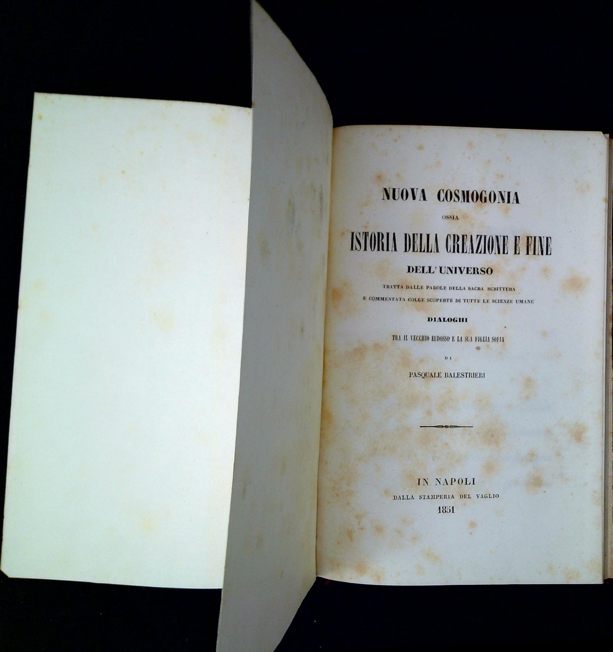 Nuova cosmogonia ossia Istoria della creazione e fine dell'universo tratta dalle parole della sacra scrittura e commentata colle scoperte di tutte le scienze umane. Dialoghi tra il vecchio Eudosso e la sua figlia Sofia | Libri antichi e moderni | Balestrieri, Pasquale, ,Balestrieri, Pasquale