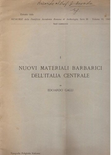 Nuovi materiali barbarici dell'Italia centrale | Libri antichi e moderni | Galli E
