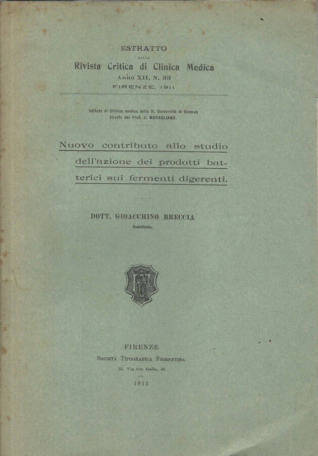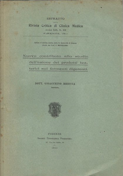 Nuovo contributo allo studio dell'azione dei prodotti batterici sui fermenti digerenti | Libri antichi e moderni | Gioacchino Breccia