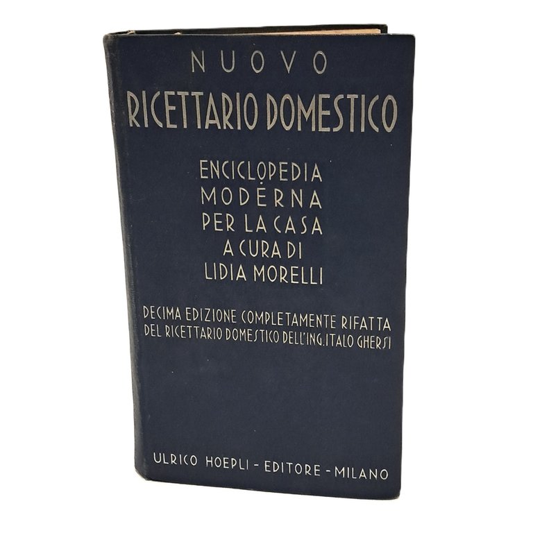 Decima edizione completamente rifatta del ricettario domestico dell'ing Italo Ghersi; Enciclopedia moderna per la casa Con 5608 ricette, 170 figure e 13 tavole fuori testo. In ordine alfabetico. Cartonato. Pp. 899.Qualche fioritura.
