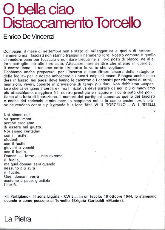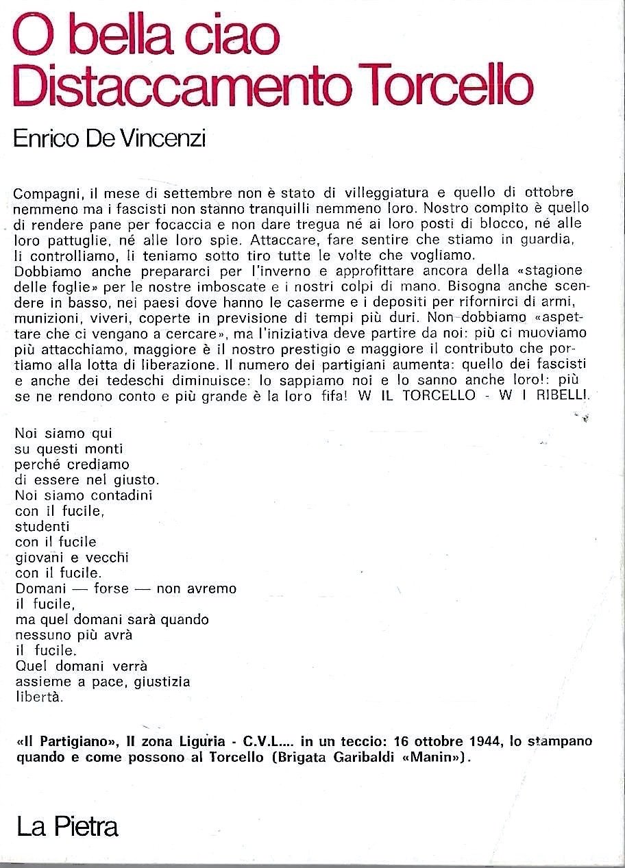 O bella ciao. Distaccamento Torcello | Libri antichi e moderni | De Vincenzi, Enrico, ,De Vincenzi, Enrico