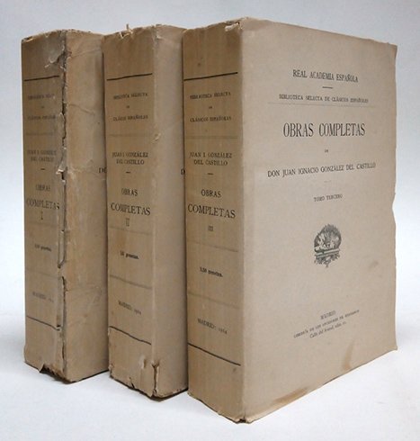 Madrid, Real Academia Española, 1914. Tres volúmenes en 4to. menor; 525 pp. + 534 pp. + 526 pp. Cubiertas originales.