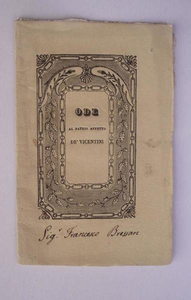 Ode al patrio affetto de' Vicentini. Un umile loro concittadino. consacra. | Libri antichi e moderni |