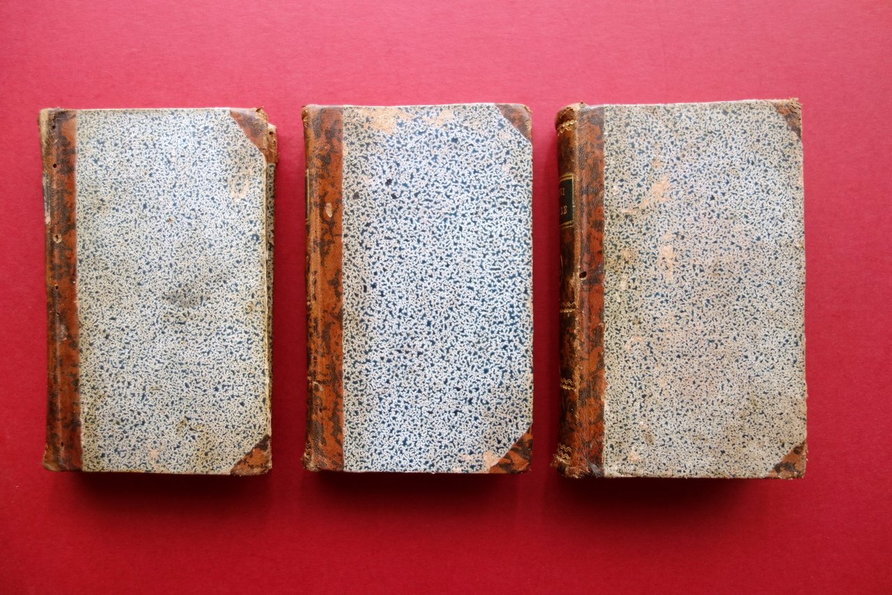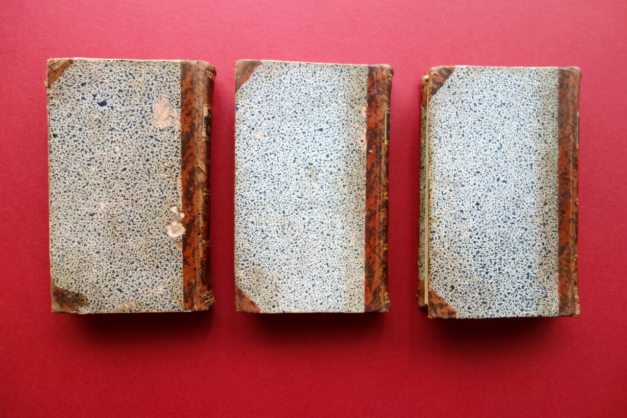 Pietro Verri, Opere filosofiche di Pietro Verri tomo I - II - III - IV (quattro tomi rilegati in tre volumi) Londra, 1801; cm 13x8; pp. 324 (tomo I); pp. 344 (tomo II); pp. 142 (tomo III); pp. da 143 a 395 (tomo IV); legatura d'epoca in mezza pelle (dorso e angoli) con titolo e fregi impressi in oro al dorso (titolo entro tassello), piatti marmorizzati. 4 tomi rilegati in tre volumi. Condizioni di conservazione Volumi tutti in buone condizioni con tracce d'uso; coperte con alcune piccole abrasioni e qualche mancanza principalmente ai margini e agli angoli dei piatti. Interni buoni con leggere bruniture. Bella edizione londinese" del 1801. Opera in quattro tomi rilegati in tre volumi. Di seguito le opere presenti: "Del discorso sull'indole del piacere, e del dolore"; "del discorso sulla felicità"; "della economia politica"; "sulle leggi vincolanti principalmente nel commercio de' grani / riflessioni adattate allo stato di Milano coll'occasione che l'anno 1769 trattavasi di riformare il sistema d'annona - parte I e II". SETT11.L19358 N P "