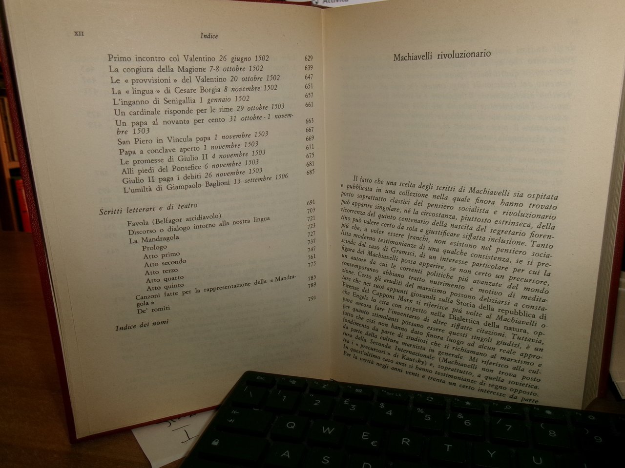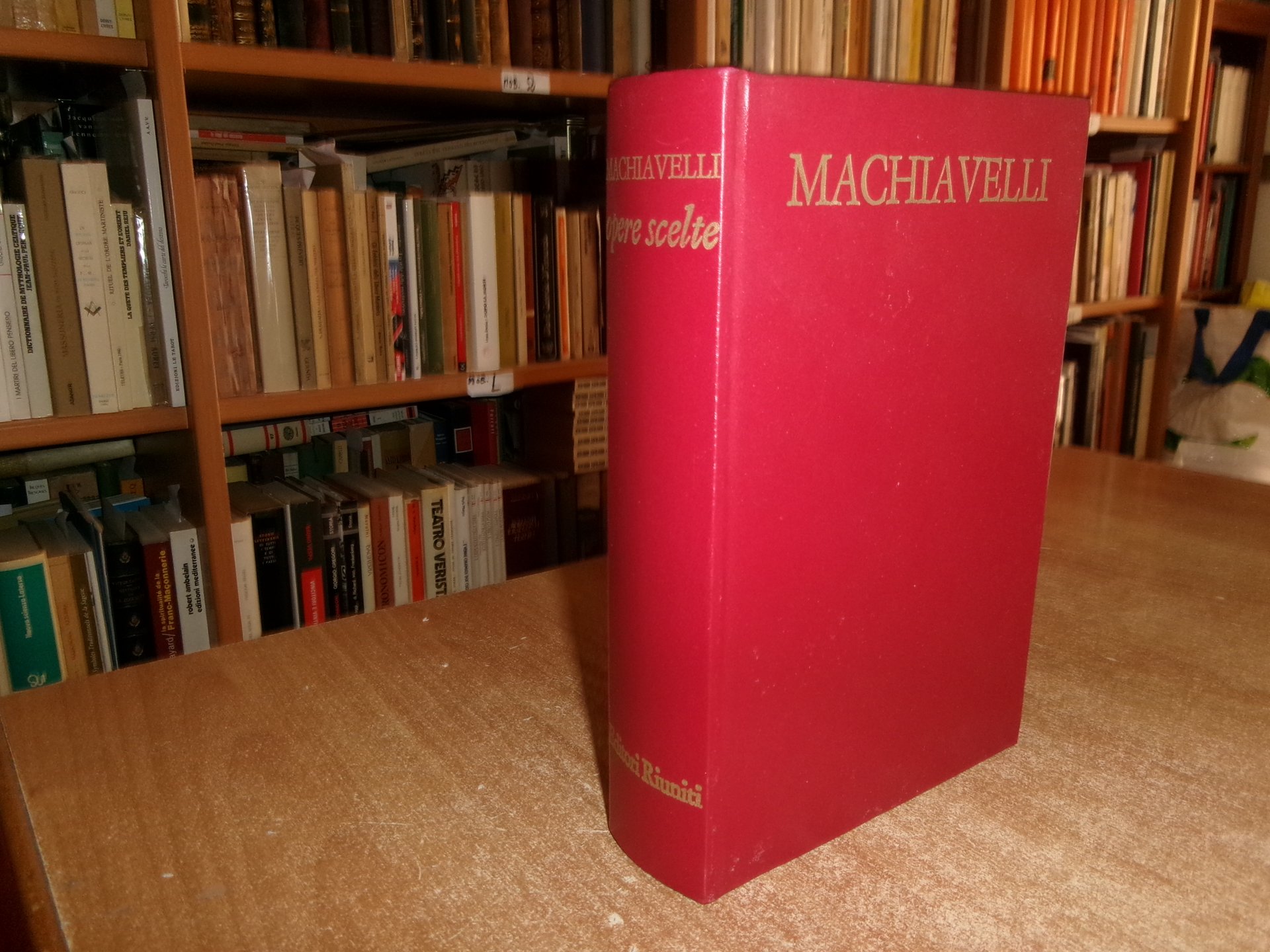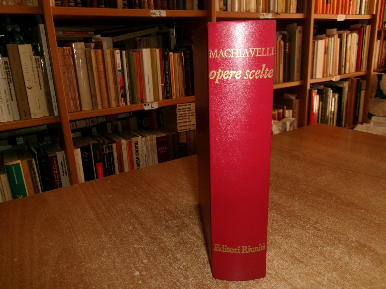 di Niccolò Machiavelli. Roma, Editori Riuniti, 1973. OPERE SCELTE. A cura di Gian Franco Berardi. Introduzione di Giuliano Procacci. In-8°, similpelle bordeaux con titoli in oro. xliv, 805 pp. Libro usato ma ben conservato. Uff. stanzetta a sinistra I - 2