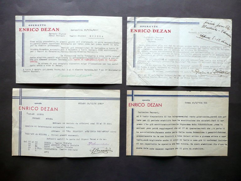Operette Enrico Dezan 4 Lettere Programmi Proposte Teatro Storchi Modena 1934-38 | Libri antichi e moderni |