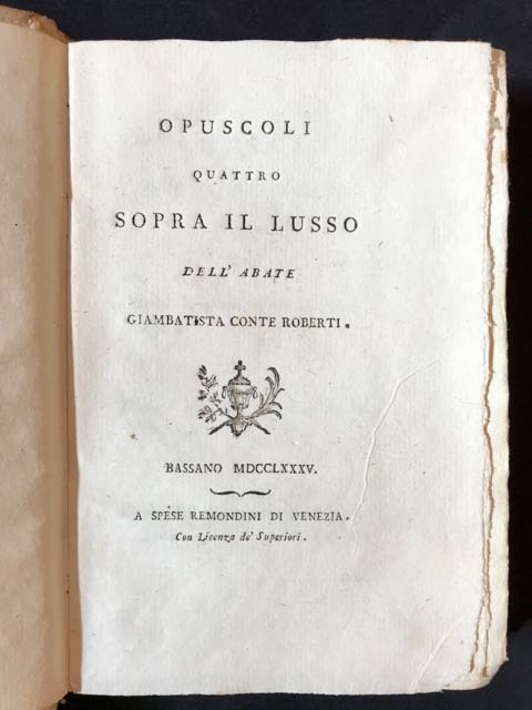 Opuscoli quattro sopra il lusso. | Libri antichi e moderni | Roberti Giovanni Battista.