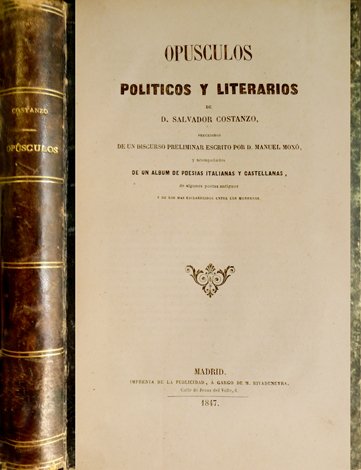 Opúsculos Políticos y Literarios. Precedido de un discurso preliminar por Manuel Moxó. | Libri antichi e moderni | Costanzo, Salvador (1804-1866).