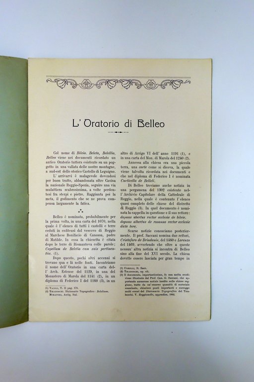 Oratorio di Belleo Marola Otello Siliprandi Primo '900 Autografo Reggio Emilia | Libri antichi e moderni |