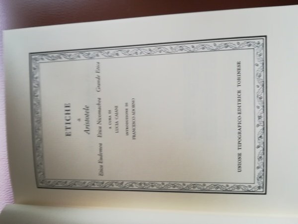 Fa parte della collezione "Classici della filosofia", fondata da Nicola Abbagnano e diretta da Tullio Gregory. Vol. 5 dell'organon di Aristotele, a cura di Lucia Caiani. Introduzione di Francesco Adorno. Comprende: Etica Eumedea - Etica Nicomachea - Grande Etica. Stato di nuovissimo.